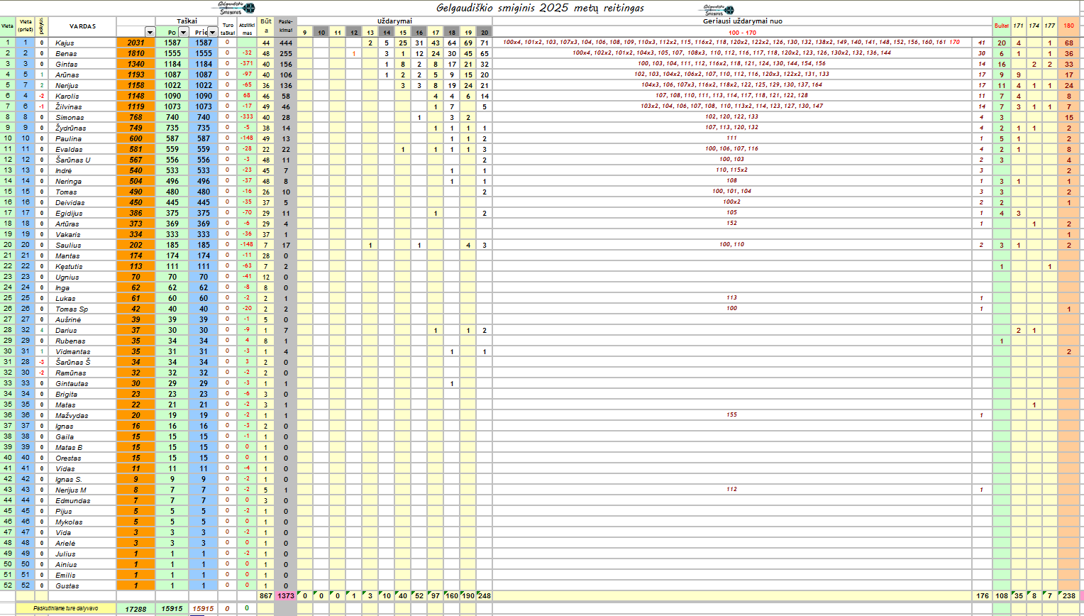 Gelgaudiškio smiginio REITINGAS 2025 (atnaujinta 2025 11 20)